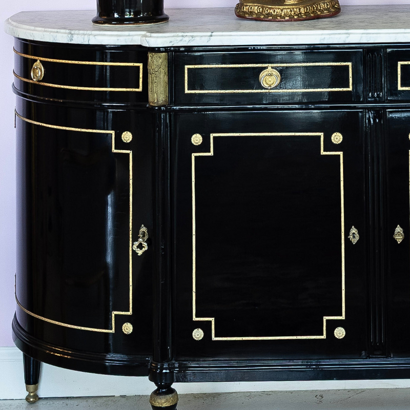 Many of our pieces are restored in a flat or glossy finish, with optional satin or glossy levels available across most pieces.